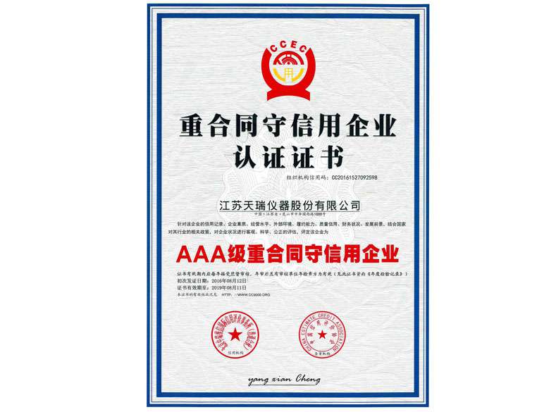 苏州市信用管理示范企业证书